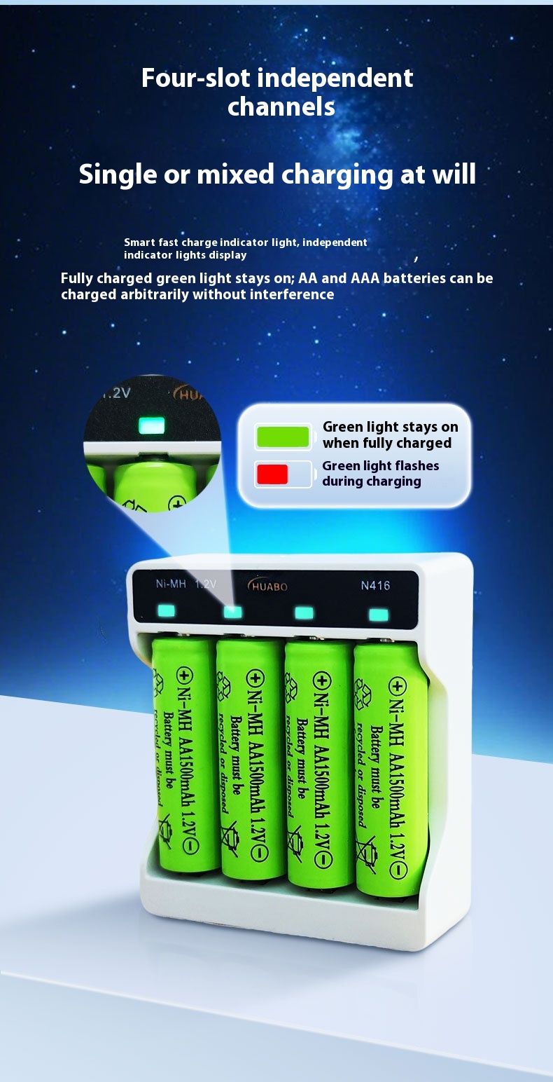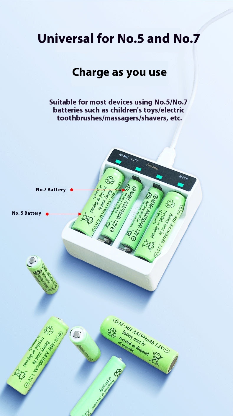 4 × AA Batteries (No.5) 1500mAh + 1 Charger (4 slots)